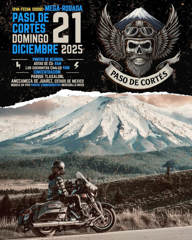 El destino será el Parque Tlaxaloni, en Amecameca, un espacio dentro de la zona de los volcanes, donde los asistentes podrán disfrutar paisajes de alta montaña, música en vivo, mercadillo biker y diversas sorpresas pensadas para despedir el año rodando. Como ha sido constante en las rodadas de 1200SC, el evento mantiene su espíritu incluyente: todas las marcas, modelos y cilindradas son bienvenidas.