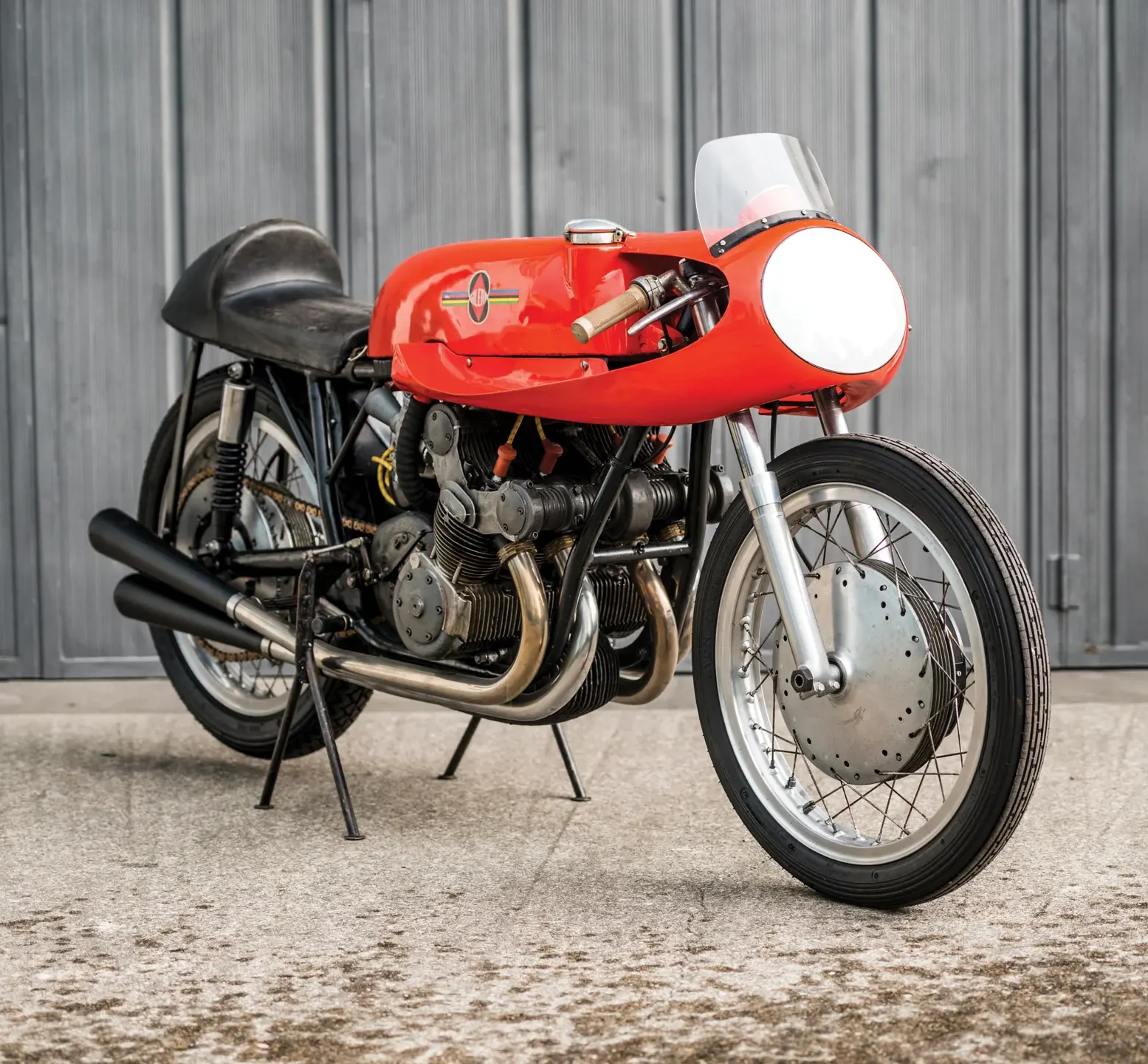 Con 492,7 cc y cuatro cilindros inclinados 30 grados hacia adelante, distribución de doble árbol de levas, dos válvulas por cilindro y un cigüeñal de rotación inversa que anticipaba las soluciones de las MotoGP modernas, la moto comenzó produciendo 50 caballos a 9,000 rpm. Tras el desarrollo progresivo la cifra llegó a los 70 caballos a 10,500 rpm, con velocidades punta que superaban los 200 km/h con menos de 150 kilogramos de peso.