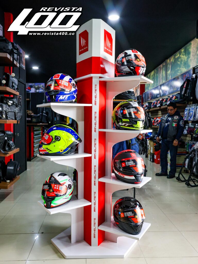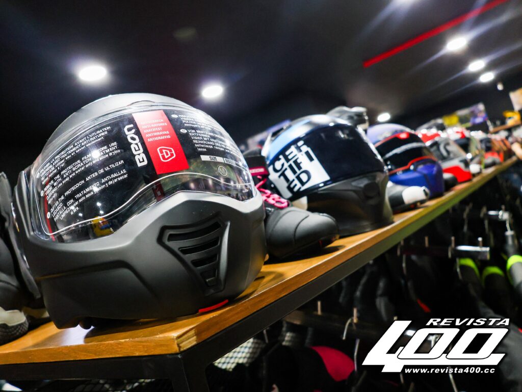 A pesar de ser un espacio limitado en superficie, basta avanzar unos pasos para descubrir que la tienda tiene una distribución adecuada y catálogo completo. Primero nos recibe un amplio pasillo lleno de equipo pensado para cualquier tipo de rodada, cascos de marcas reconocidas como LS2, Joe Rocket, Nolan, MT o Kov, chamarras de Inmortal, LS2 y Joe Rocket; además de una sólida selección de guantes y calzado especializado que demuestran que en esta nueva sucursal hay opciones para todos los estilos y presupuestos.