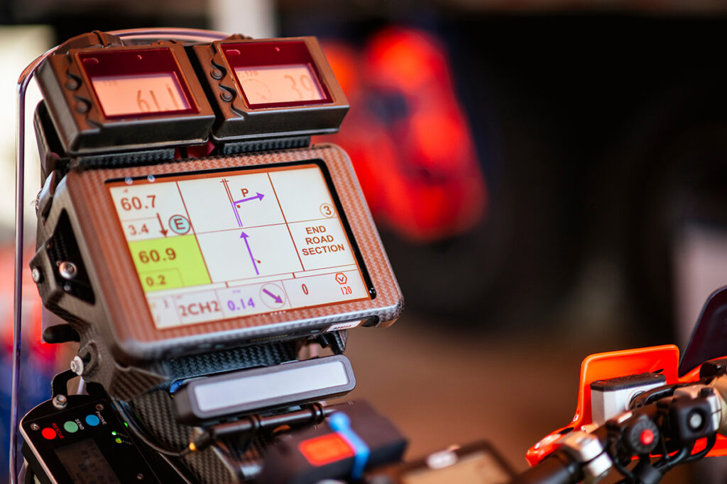 La torre de navegación es el rasgo más visible que separa a una moto de Dakar de cualquiera de producción. En ella se posiciona el roadbook, sistemas de medición de distancia, GPS de control y dispositivos de seguridad. Este conjunto las convierte en motos de navegación únicas.