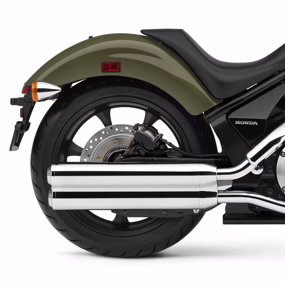 La Fury impacta con su silueta larga y el centro de gravedad bajo. Con una distancia entre ejes de 1,805 mm y una horquilla inclinada a 38°, que realzan su carácter radical. El tanque en forma de lágrima fluye hacia el asiento monoplaza, mientras que el manillar estilo pull-back complementa las líneas extendidas del chasis. Escapes cromados, acabados metálicos y detalles contrastantes refuerzan su esencia custom.