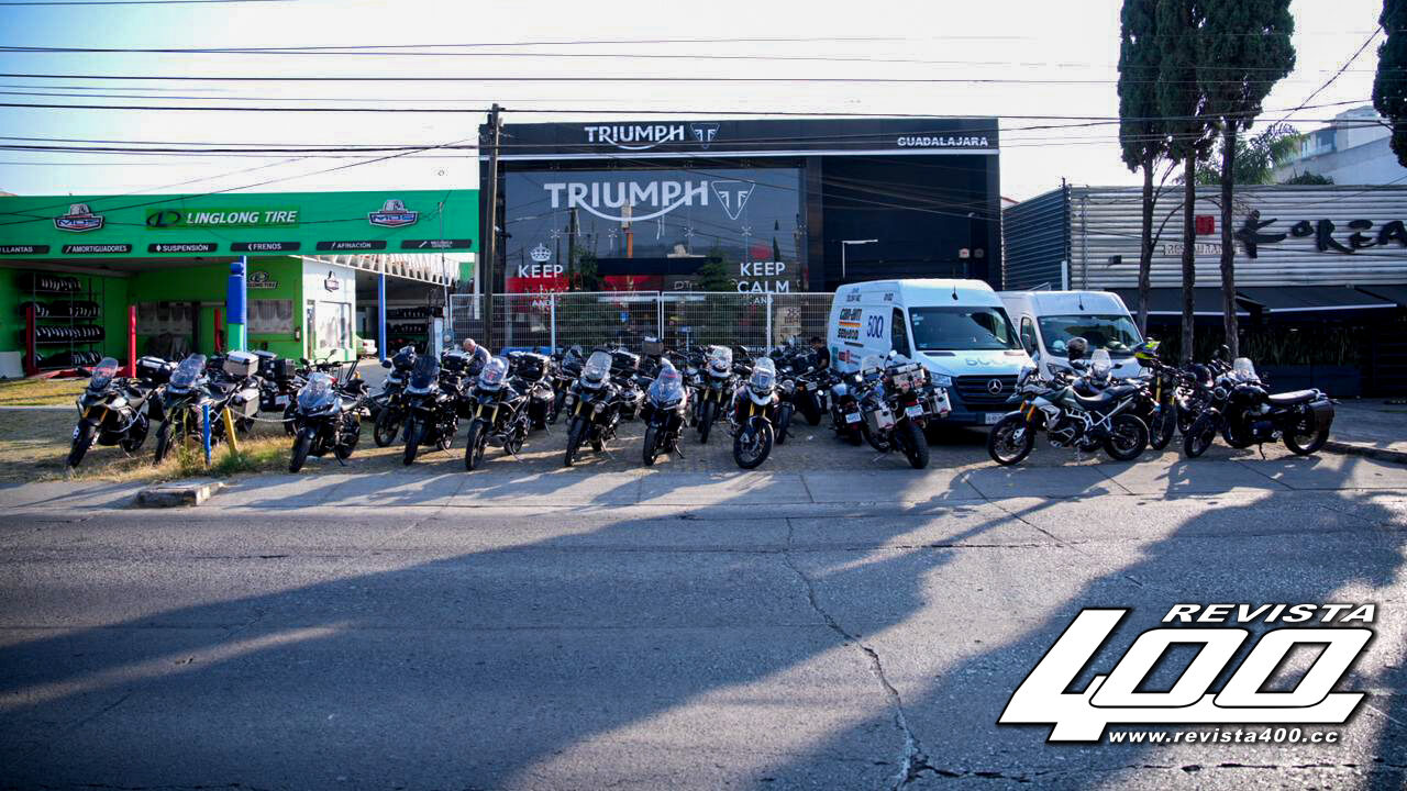 En Revista 400, comenzamos a saborear el Grand Tour desde que retiramos una brutal Rocket 3 de 2,500 cc en Triumph Satélite, para encontrarnos con el grupo de invitados y clientes días después en la agencia Lerma. Desde este último punto, se dio el clutch-out en donde unas 20 motocicletas de la firma rodamos con rumbo a Guadalajara, en un grupo liderado por Amado Martínez de Triumph Lerma y Ioram Abolnik, embajador de la marca; así como también se contó con la participación activa de Roy Nieto, Marketing Manager & Customer Experience para Triumph México.