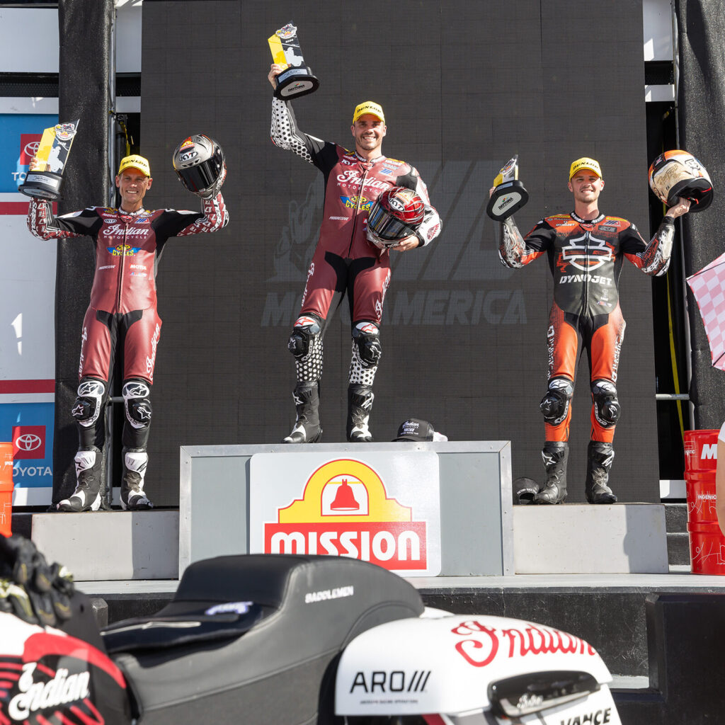 El fin de semana en Daytona dejó claro el buen momento que vive el fabricante de Springfield. El piloto Hayden Gillim dominó la primera carrera con autoridad, consiguiendo la victoria con una ventaja amplia y rompiendo la racha de triunfos consecutivos que el piloto de Harley‑Davidson, Kyle Wyman, había logrado previamente en este circuito dentro de la categoría.