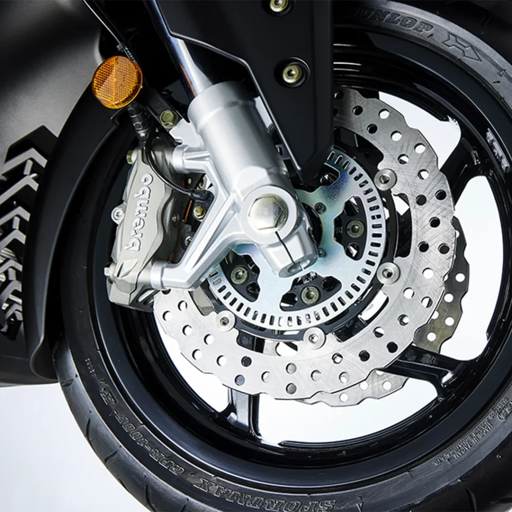 El conjunto se complementa con una transmisión automática tipo CVT y una transmisión final por correa, una solución que reduce vibraciones y mantenimiento frente a sistemas tradicionales. En términos de desempeño, el scooter puede superar los 160 km/h de velocidad máxima, cifras que lo colocan entre los modelos más potentes de su categoría.