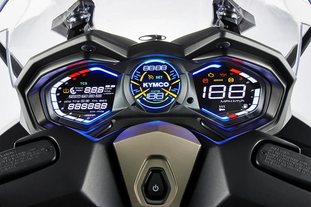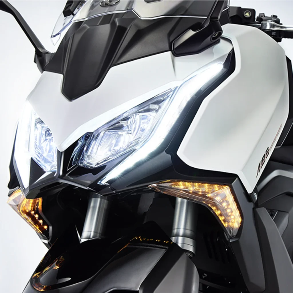 El AK 575 apuesta por el confort y la tecnología, y entre sus principales características destacan modos de manejo (Sport y Rain) con control de tracción, control de crucero, sistema de encendido sin llave, parabrisas ajustable, pantalla digital con funciones inteligentes, puertos de carga USB y amplio espacio bajo el asiento. El diseño también refleja su posicionamiento dentro del segmento premium. Con líneas agresivas, iluminación completamente LED y una postura de manejo sumamente cómoda.