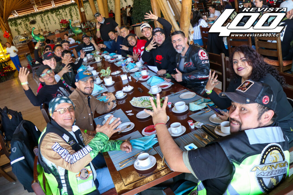 Al llegar a los Jardines de México, el grupo fue recibido con un desayuno en una locación que se distingue por su belleza y atractivo natural, características principales del lugar. Durante la estancia, el equipo de QJMotor entregó kits de regalo a los pilotos, para luego tomar la foto grupal de recuerdo. A lo largo de la jornada, la marca realizó dinamicas en donde se obsequiaron más regalos a los participantes.