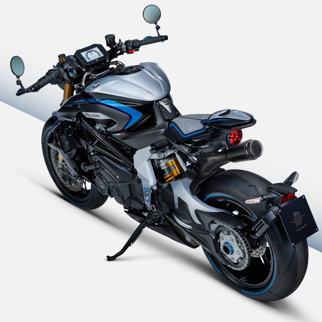 En lo mecánico, la Rush Titanio mantiene el tetracilíndrico en línea de 998 cc, cuidadosamente ensamblado en Varese y actualizado para cumplir las normativas ambientales actuales. Este motor ofrece una entrega contundente en todo su régimen de revoluciones, con una potencia de 208 caballos que la siguen posicionando como una de las naked más potentes del mercado. La atención al detalle se extiende a componentes de la más alta calidad y prestaciones, como válvulas radiales y bielas forjadas.
