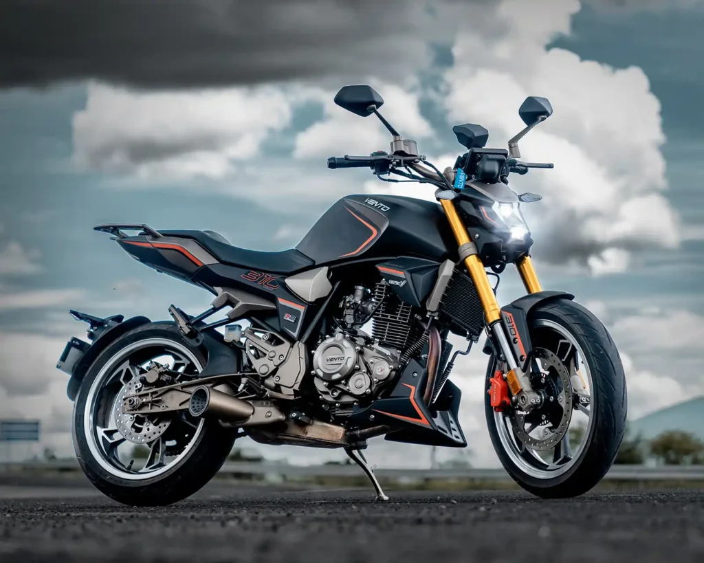 Su diseño moderno y deportivo la coloca como una opción atractiva para quienes buscan dar el siguiente paso en potencia y prestaciones sin salir del ecosistema Vento. Incorpora una horquilla invertida al frente y un monoshock trasero, lo que asegura mayor estabilidad y respuesta en el manejo. En cuestión de seguridad, equipa frenos de disco hidráulicos en ambas ruedas, rines de aluminio y neumáticos de perfil deportivo con medidas 110/70 en la parte delantera y 150/55 en la trasera.