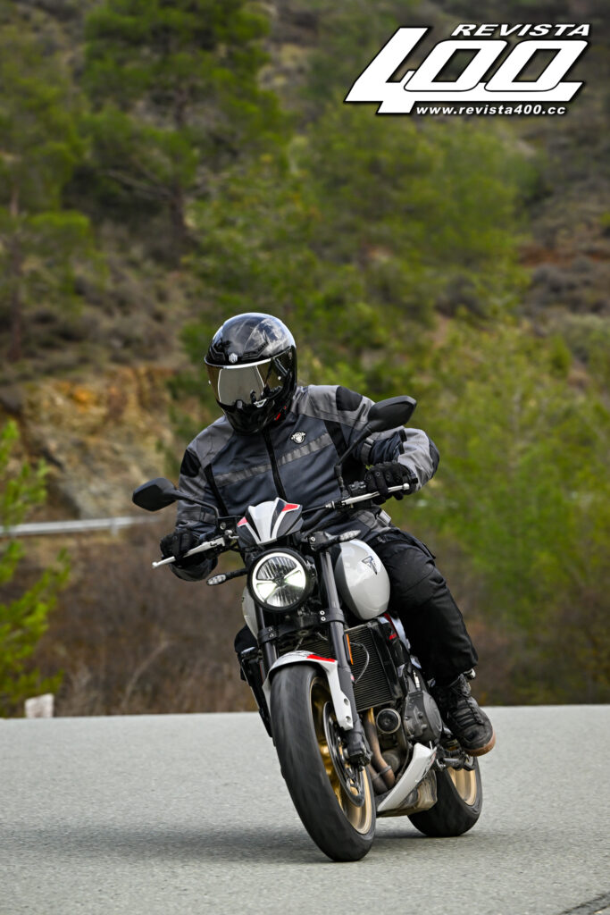 Si bien, no tiene la estirada de un cuatro cilindros, ni el golpe desde bajas de un bicilíndrico, este motor tiene su encanto en el rango medio, empujando con facilidad sin sentirse vacío o descompensado. No es una moto de empuje bestial, al contrario nos entrega esos 115 caballos de forma progresiva, controlable y sobre todo muy divertida.