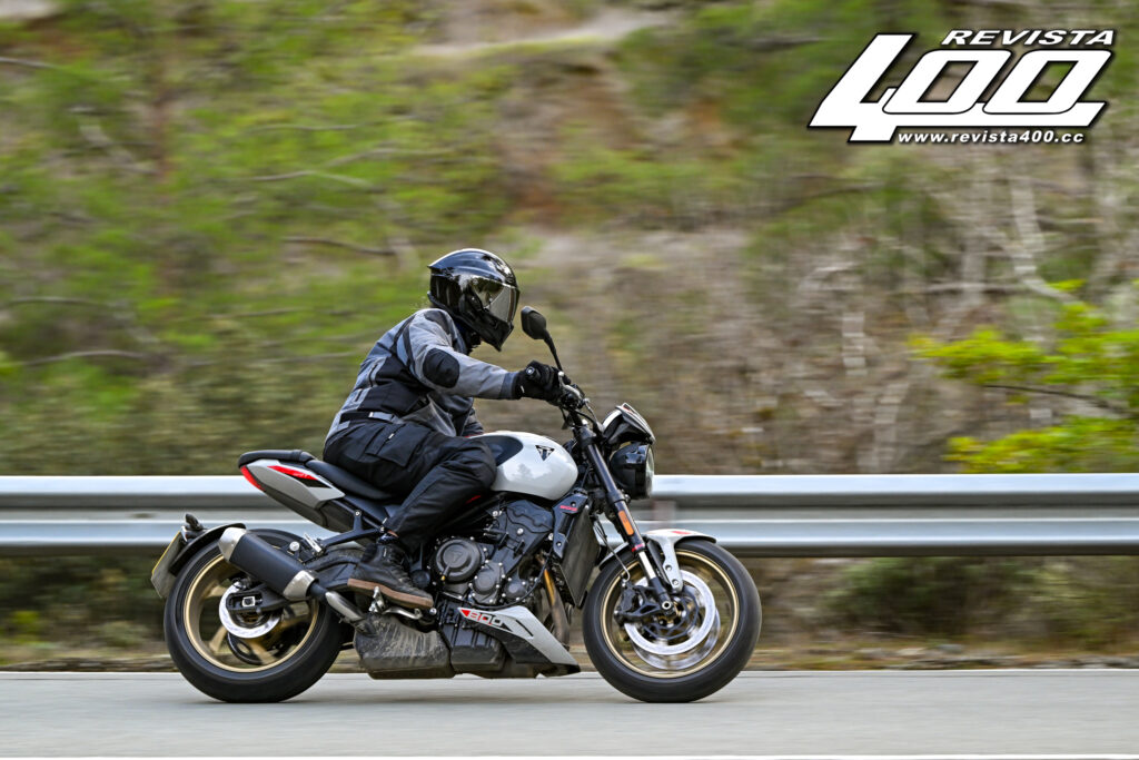 El sonido del triple de Triumph sigue siendo un ingrediente clave, acompañándonos en todo momento en la aceleración y que definitivamente otorga carácter al modelo y difiere estéticamente respecto a su hermana menor, montando la punta del escape al costado de la llanta trasera, diferente a como lo hace la 660, con la salida en la parte baja del chasis.