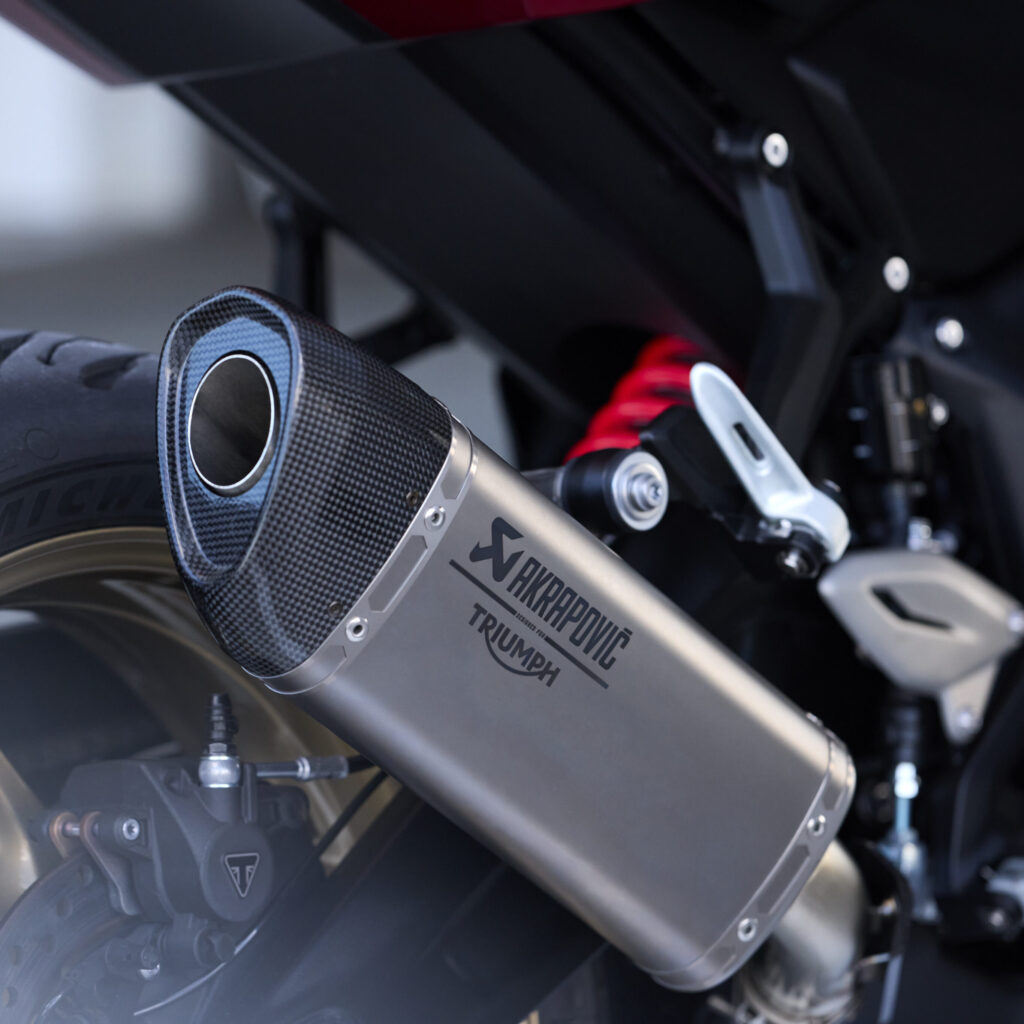 De serie incorpora tres modos de manejo (Road, Sport y Rain), ABS y control de tracción optimizados gracias a una IMU. Además, está equipada con quickshifter bidireccional y control crucero, todo gestionado desde su pantalla TFT de 3.5 pulgadas, adicionada con conectividad Bluetooth mediante el sistema My Triumph, desde donde se puede controlar la navegación, llamadas y música de manera más intuitiva. El modelo mantiene iluminación full led y un sistema que desactiva las direccionales automáticamente.