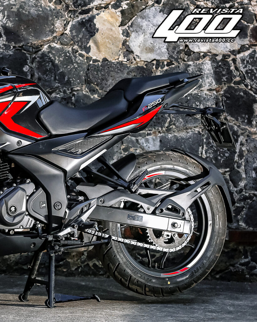 La F250 aprovecha una excelente base mecánica con un motor de 250 cc confiable y de funcionamiento adecuado para la ciudad.