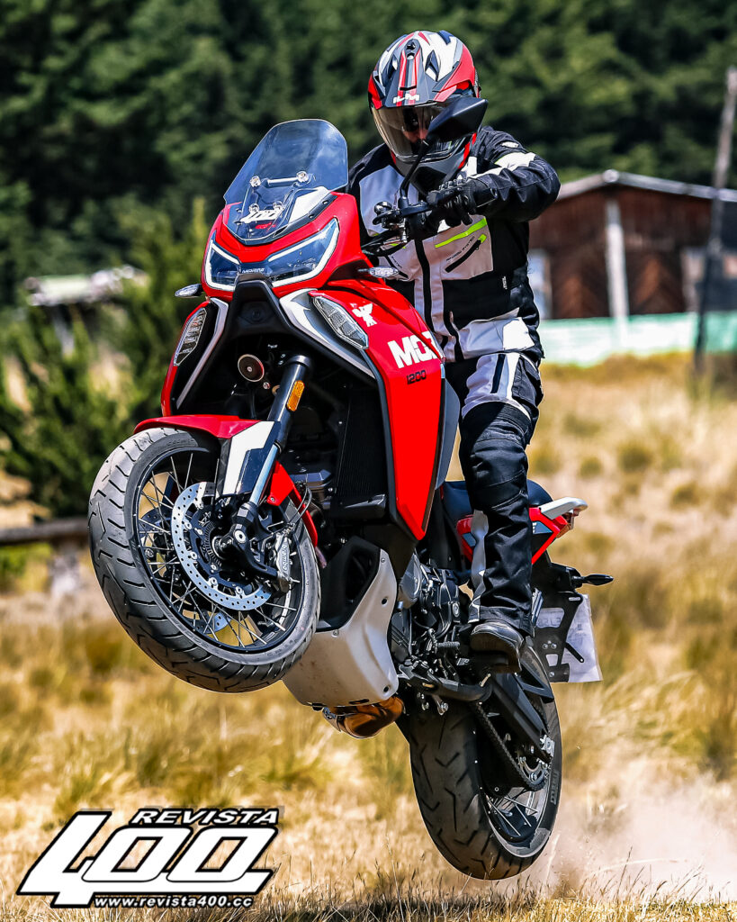 Si bien no se trata de una maxitrail para un rally extremo, se defiende con muchísima dignidad pese a sus buenos kilos de más, ya que durante la prueba en off-road nos permitió hacer más de lo que esperábamos. Entre tramos con pequeños y medianos brincos, de esos que te hacen probar la suspensión, las mismas respondieron de maravilla. En ningún momento llegamos al fondo del recorrido, siempre se sintió que había un colchón de seguridad, lo cual brinda una confianza brutal para mantener el ritmo sin temor a que la moto te castigue o te saque de la línea.