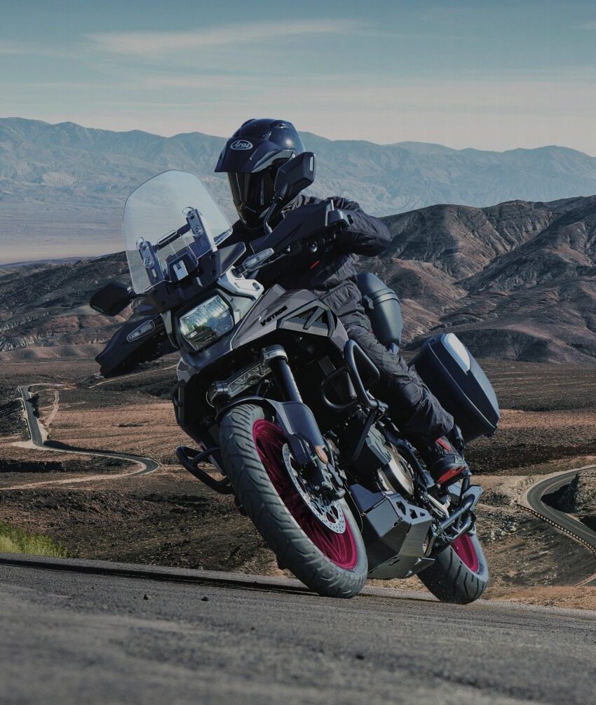 La V-Strom 1050 Tech, por su parte, incluye maletas laterales de plástico, baúl top case de 35 litros con soporte específico, barras protectoras de motor, protector de cadena, protector de tanque y puños calefactados. Una configuración equilibrada que convierte a esta V-Strom en una compañera de viaje sin necesidad de inversión adicional.