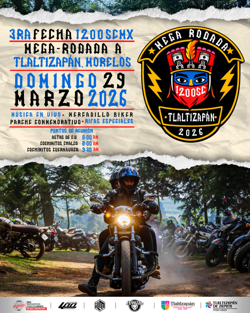 La tercera mega-rodada del año de 1200 Sentimientos Cúbicos ya tiene fecha. La cita es el próximo domingo 29 de marzo y el destino: Tlaltizapán de Zapata, un municipio ubicado en la región sur del estado de Morelos y reconocido como el “Pueblo Mágico de la Revolución del Sur”.